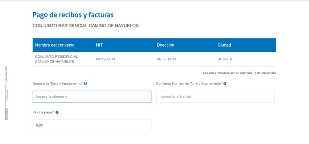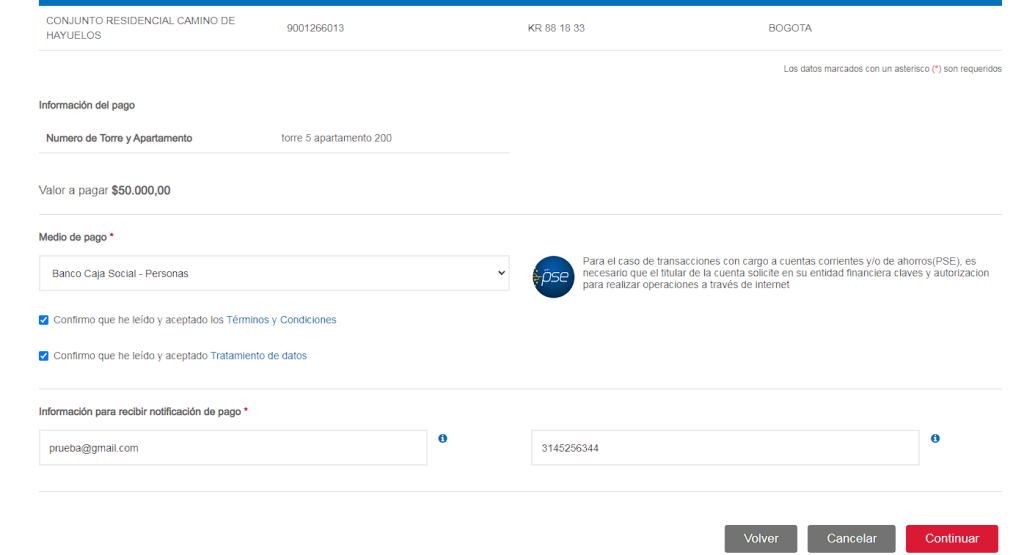 Podras ingresar el número de torre y apartamento, el valor a pagar y si tienes alguna observación la puedes colocar es opcional y das clic en continuar: