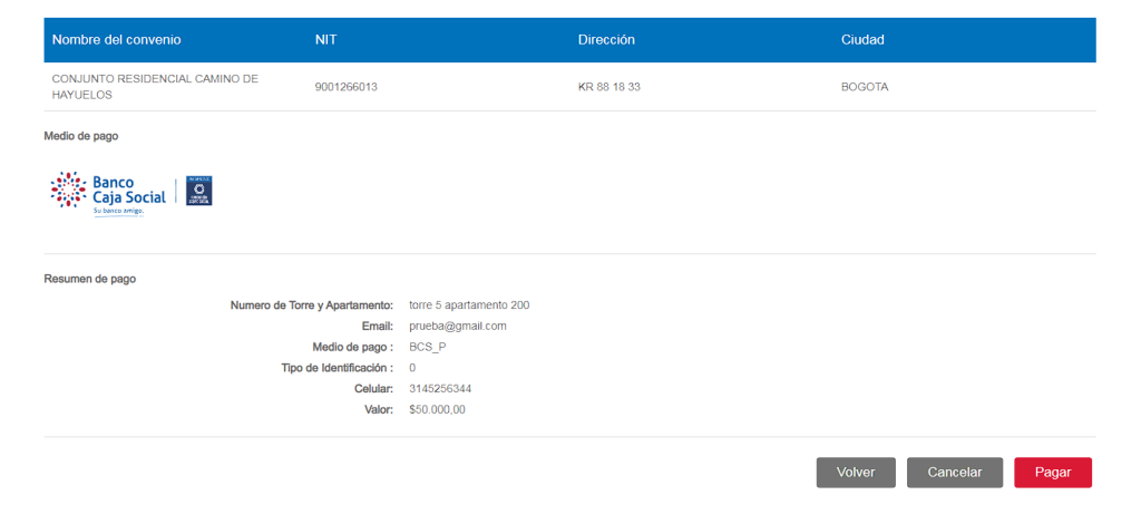Verificas que los datos de pago esten correctamente y das clic en pagar: